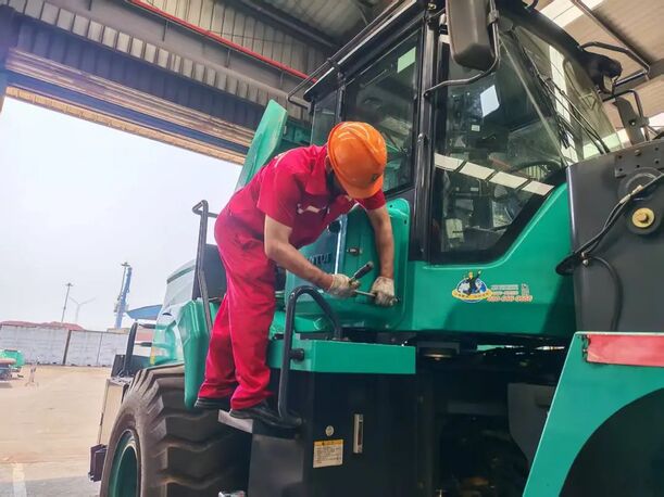 作為此次客戶關(guān)愛行活動的重要一站,山推服務(wù)團隊頂著盛夏酷暑,率先奔赴山東區(qū)域某港口,為客戶的6臺LE60-X5電裝整機提供全方位檢修服務(wù)。抵達(dá)現(xiàn)場后,服務(wù)人員迅速投入工作。針對港口作業(yè)環(huán)境的特點,團隊制定了精細(xì)化服務(wù)方案:首先對6臺整機開展全車點檢,重點檢查核心組件的運行狀態(tài),細(xì)致排查螺栓緊固度,確保設(shè)備關(guān)鍵部位無隱患。