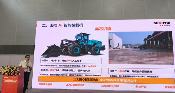 大會現(xiàn)場重磅發(fā)布了《混凝土行業(yè)數(shù)智化產(chǎn)品推薦目錄》首批名單,山推AI智能純電裝載機、AI智慧建材園管理平臺兩款產(chǎn)品入選首批推薦目錄。