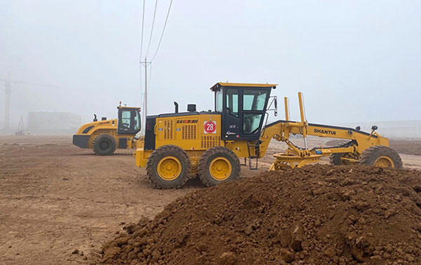 某大型建筑工地,成套采購山推系列設(shè)備,推土機(jī)、壓路機(jī)、平地機(jī)等進(jìn)行挖方、填方、場平等作業(yè),山推設(shè)備以動力強(qiáng)勁、質(zhì)量品質(zhì)高、效率高、故障率低贏得該工地青睞。