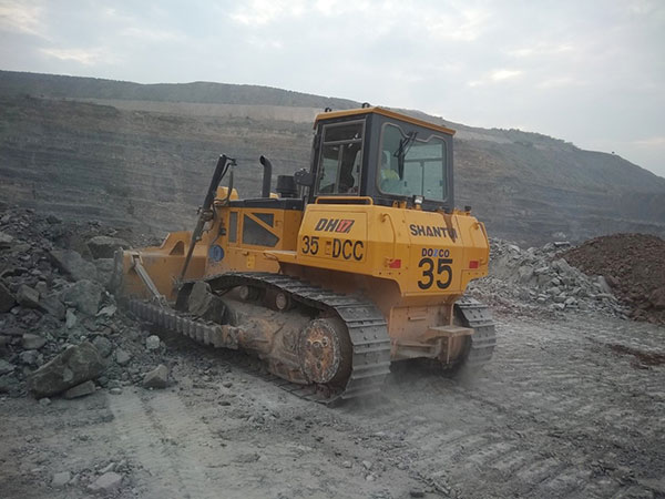 山推DH17推土機(jī)在印度某大型露天國有煤礦施工,該礦多巖石及土夾石工況,主要用于露天采煤工作平臺(tái)回填,以及爆破后采煤作業(yè)平臺(tái)碎石平整清理和短距離推運(yùn)等工作。工作強(qiáng)度大,三班倒每天工作15小時(shí)以上,環(huán)境溫度高,工地溫度高達(dá)50℃,持續(xù)約3個(gè)月。