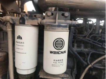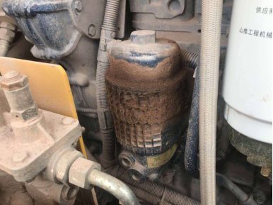 2、更換發(fā)動(dòng)機(jī)柴油濾芯(圖3),柴油濾芯是為一次性使用的,嚴(yán)禁清洗和反復(fù)使用。柴油濾芯安裝時(shí),密封圈上涂抹少量潤(rùn)滑油,用手?jǐn)Q緊直到密封墊與濾芯蓋頭相接觸為止,然后再擰緊半圈到3/4圈,且勿擰太緊,導(dǎo)致濾芯及密封圈變形漏油。