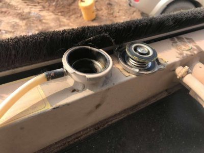 5、檢查發(fā)動(dòng)機(jī)冷卻液是否正常(圖6),是否有無(wú)雜質(zhì)和變質(zhì)及異常。如不足必須要進(jìn)行添加,不宜過(guò)滿(mǎn)造成水箱壓力過(guò)高造成水箱故障和冷卻液流出來(lái),嚴(yán)禁不同型號(hào)防凍液進(jìn)行混加,造成化學(xué)反應(yīng)。