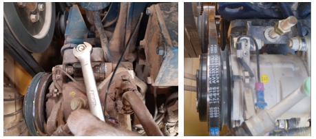 答:壓縮機皮帶打滑導(dǎo)致的吱吱響,一般是因為皮帶漲緊不足引起的,可以通過調(diào)整皮帶漲緊度解決。如有必要對打滑嚴重的皮帶進行更換。(務(wù)必發(fā)動機熄火后進行此操作)