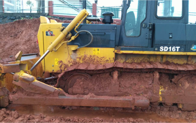 客戶新購買的SD16T機(jī)械推土機(jī)正在進(jìn)行泥土鏟運(yùn)作業(yè),在現(xiàn)場惡劣的工況下,出色的展現(xiàn)了機(jī)械推土機(jī)強(qiáng)勁高效、省油可靠的優(yōu)良性能,設(shè)備得到了客戶的好評。山推SD16T推土機(jī)采用成熟的機(jī)械傳動,傳動效率高,使用可靠,結(jié)構(gòu)合理;適用于公路、鐵路、礦山、機(jī)場、農(nóng)田等地面的推運(yùn)、開挖、回填土石方以及其它散料的作業(yè)。