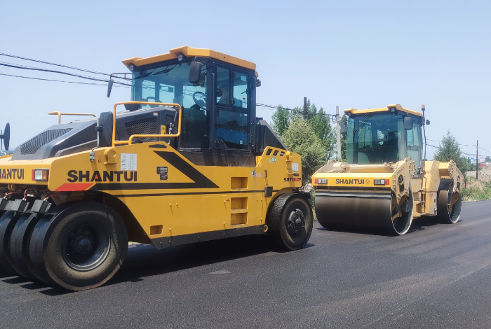 其中山推產(chǎn)品施工內(nèi)容包括:攤鋪機(jī)進(jìn)行一次性面層鋪設(shè),鋪設(shè)寬度8-8.5m;鋪設(shè)后先雙鋼輪振動(dòng)壓實(shí),后膠輪壓路機(jī)靜碾揉搓表面壓實(shí),施工遍數(shù)兩次。施工后進(jìn)行壓實(shí)度、平面度測量,達(dá)到施工標(biāo)準(zhǔn)要求。