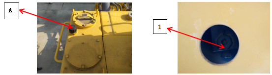 1、把推土鏟和松土器降到地面,使之停放牢靠,關(guān)閉發(fā)動機(jī),并慢慢地轉(zhuǎn)動加油口(A)的蓋以釋放內(nèi)部壓力。然后把蓋拆下。